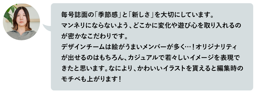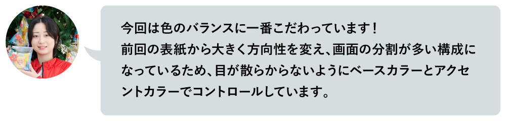 Q. 表紙のデザインを担当したTさん。