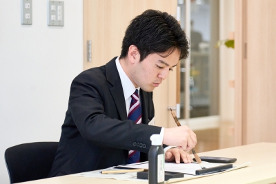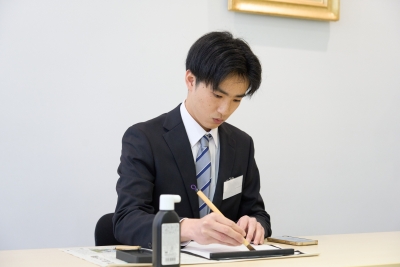 新入社員たちは、緊張しながらも自分の決意を一文字一文字、