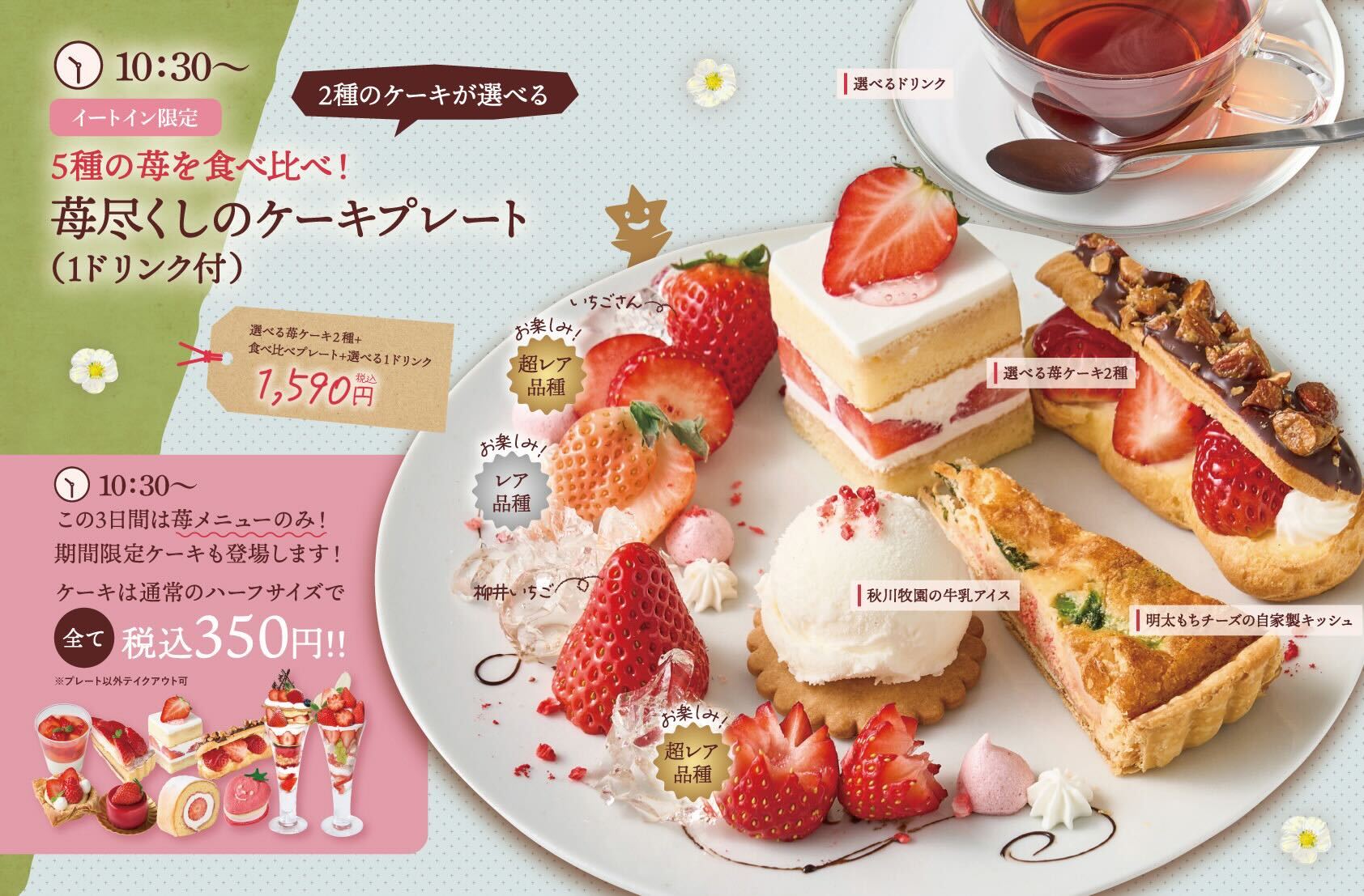 5種の苺を食べ比べ!2種類のケーキが選べる、