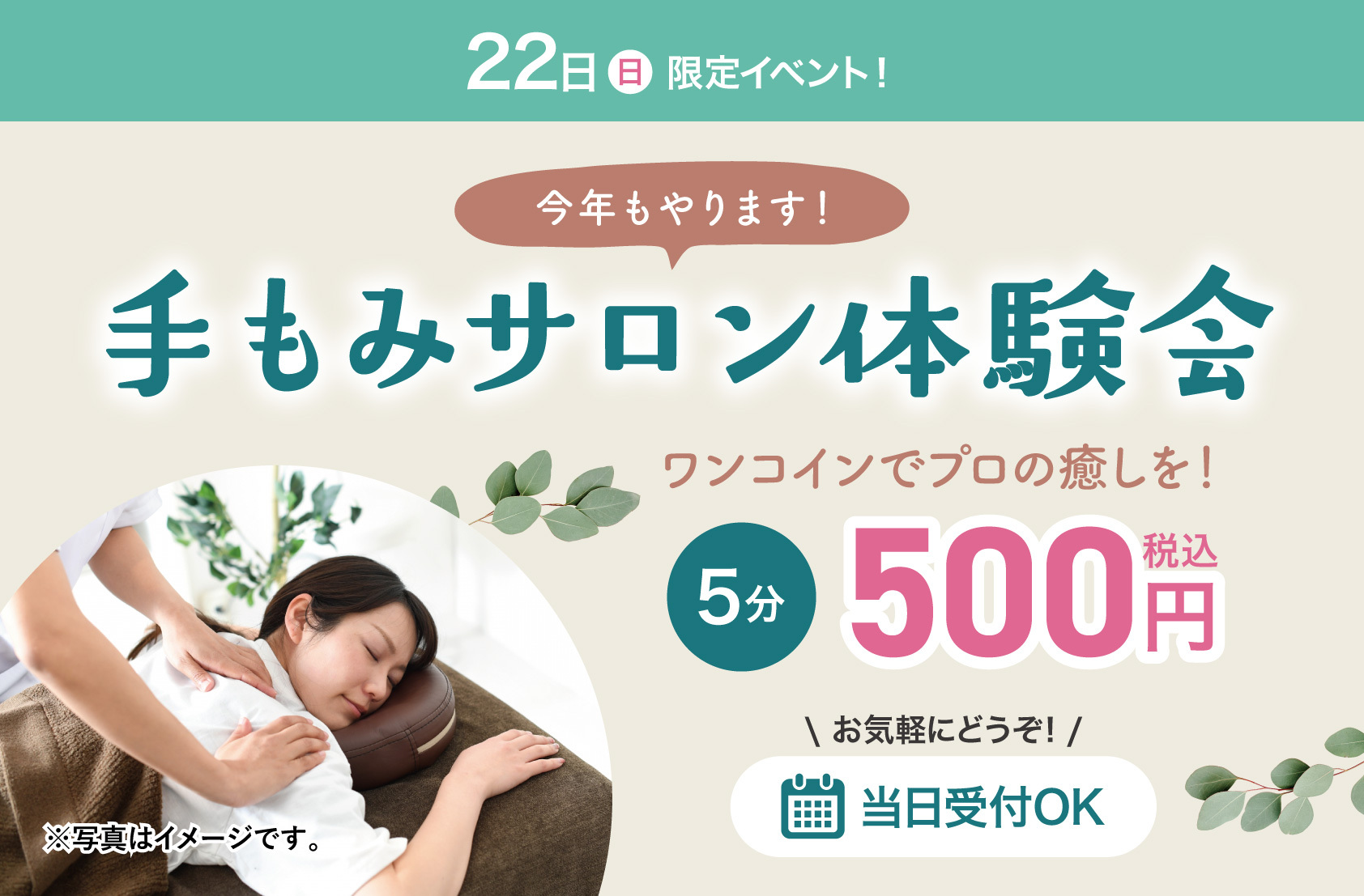 ワンコインで(¥500)でプロの癒しを体験できます。
